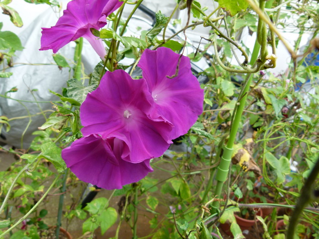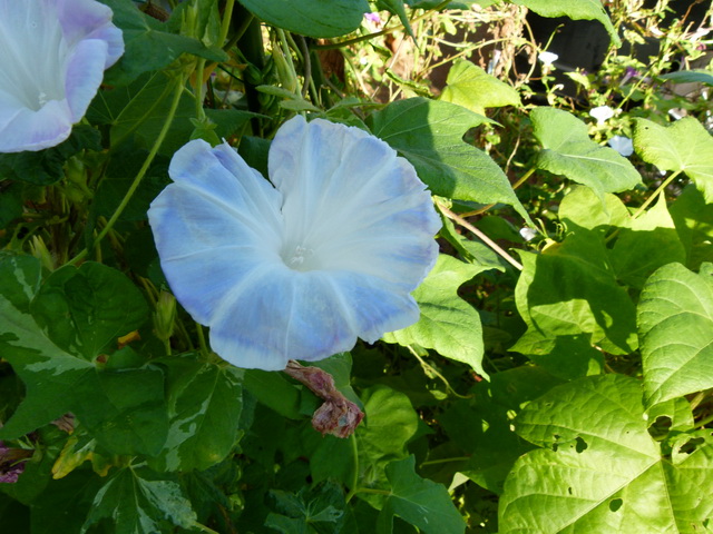 (ヘブンリーブルーは西洋アサガオで、見ごろ(咲きごろ?)は秋です)
