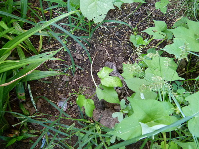 そして、葉に開いた穴に突き刺さったアサガオ。