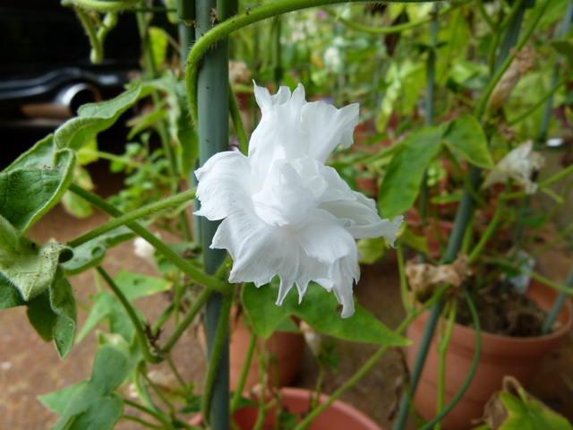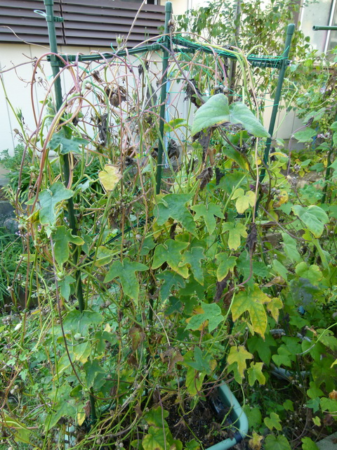 変化朝顔は、当然タネがつかず、親になるアサガオのタネを収穫したいのですが、すでにはじけ飛び始めて、他のと混じってしまいました。