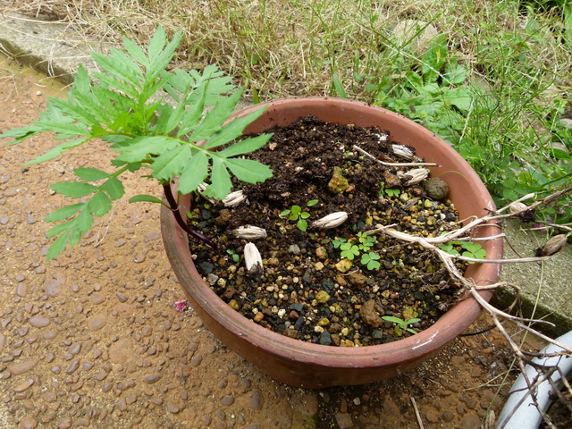 一度枯れたかなと思っていたのですが、どうもタネかな?が発芽したようです。