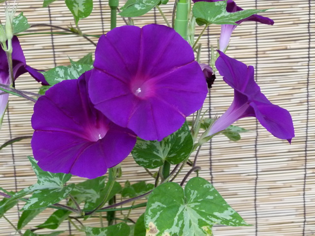 いつも大輪をきれいに咲かせてくれる紫色のアサガオ。