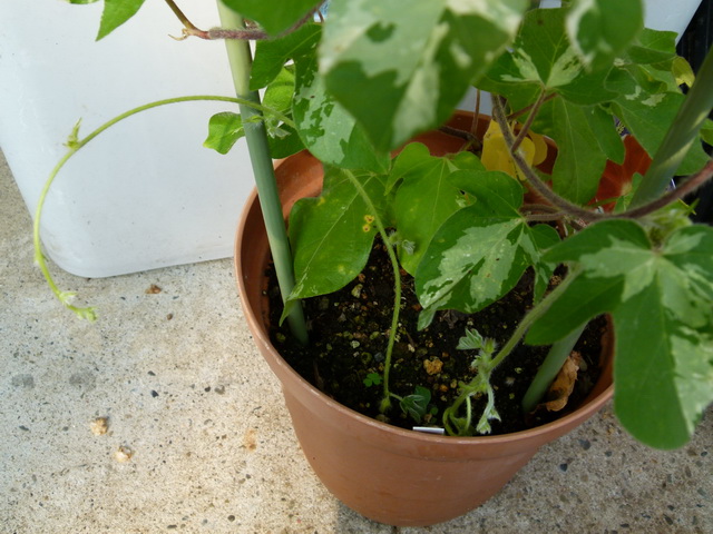 一部蔓を切ったのを挿し木に、育ってくれればいいのですが。
