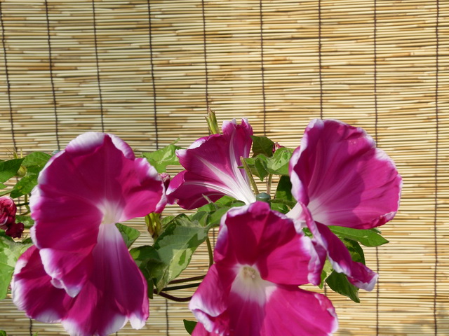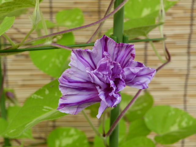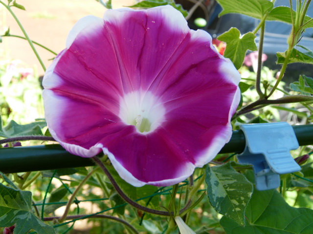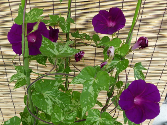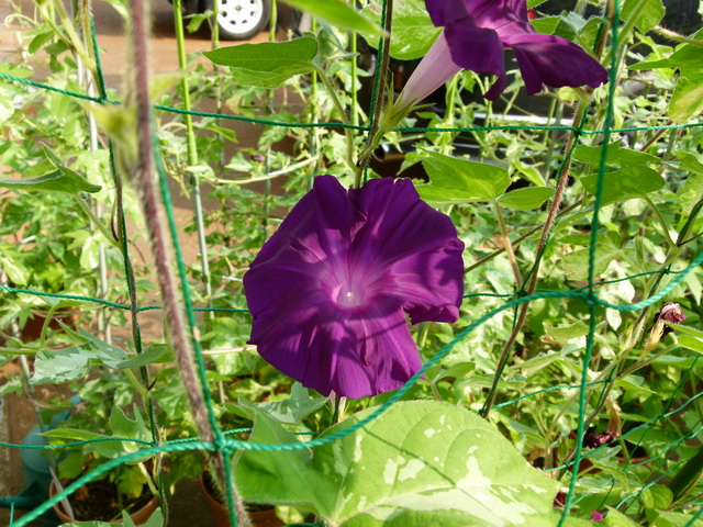 市販のタネをまいたアサガオ、暁のなんとかという花です。