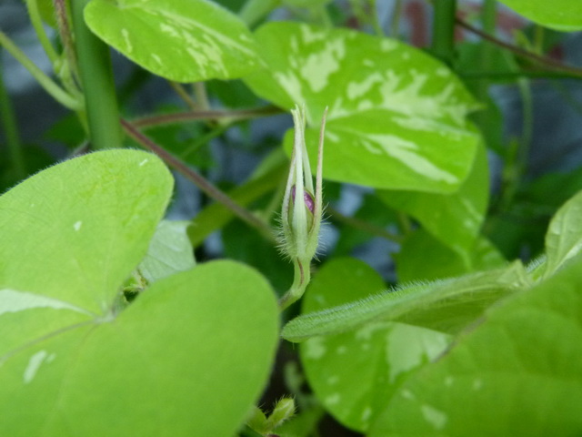 そしれこれも変化朝顔なのですが、どうも開花前に花びらを食べられてしまったようです。