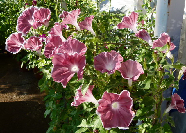 近くの街灯があり、夜も明るいせいもあるだろうし、変化朝顔は遅咲きとも聞きます。