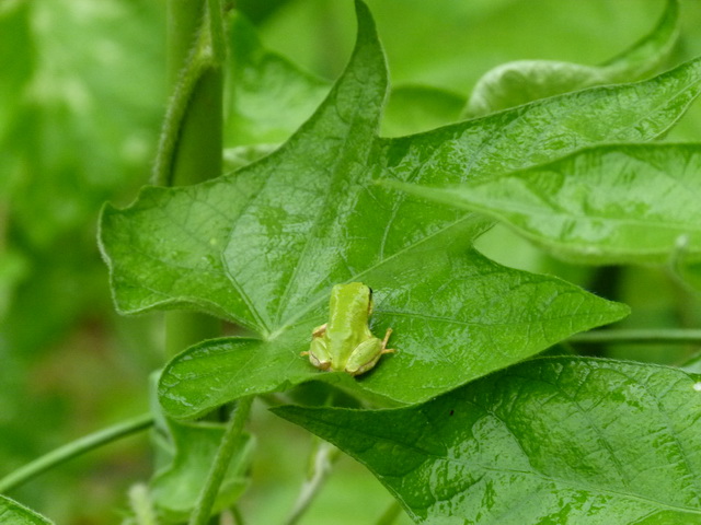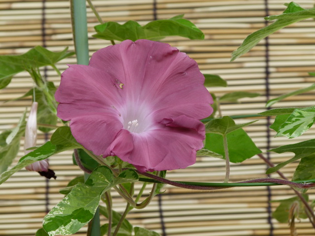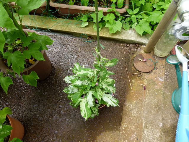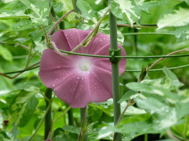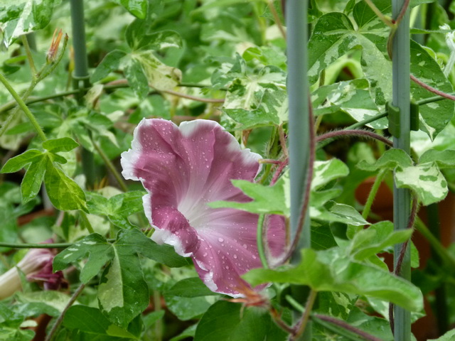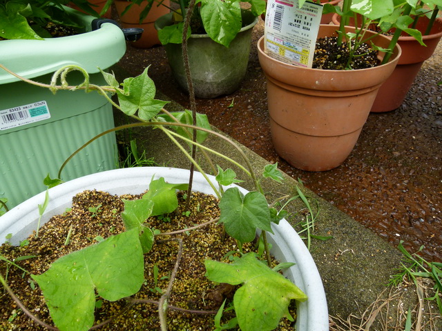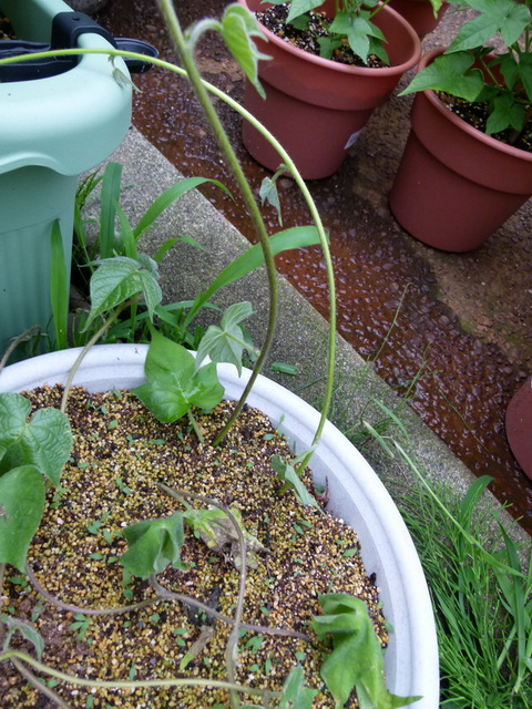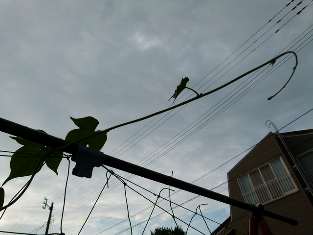 このところ、雨がっぽい日が多く、アサガオの蔓が伸び放題。